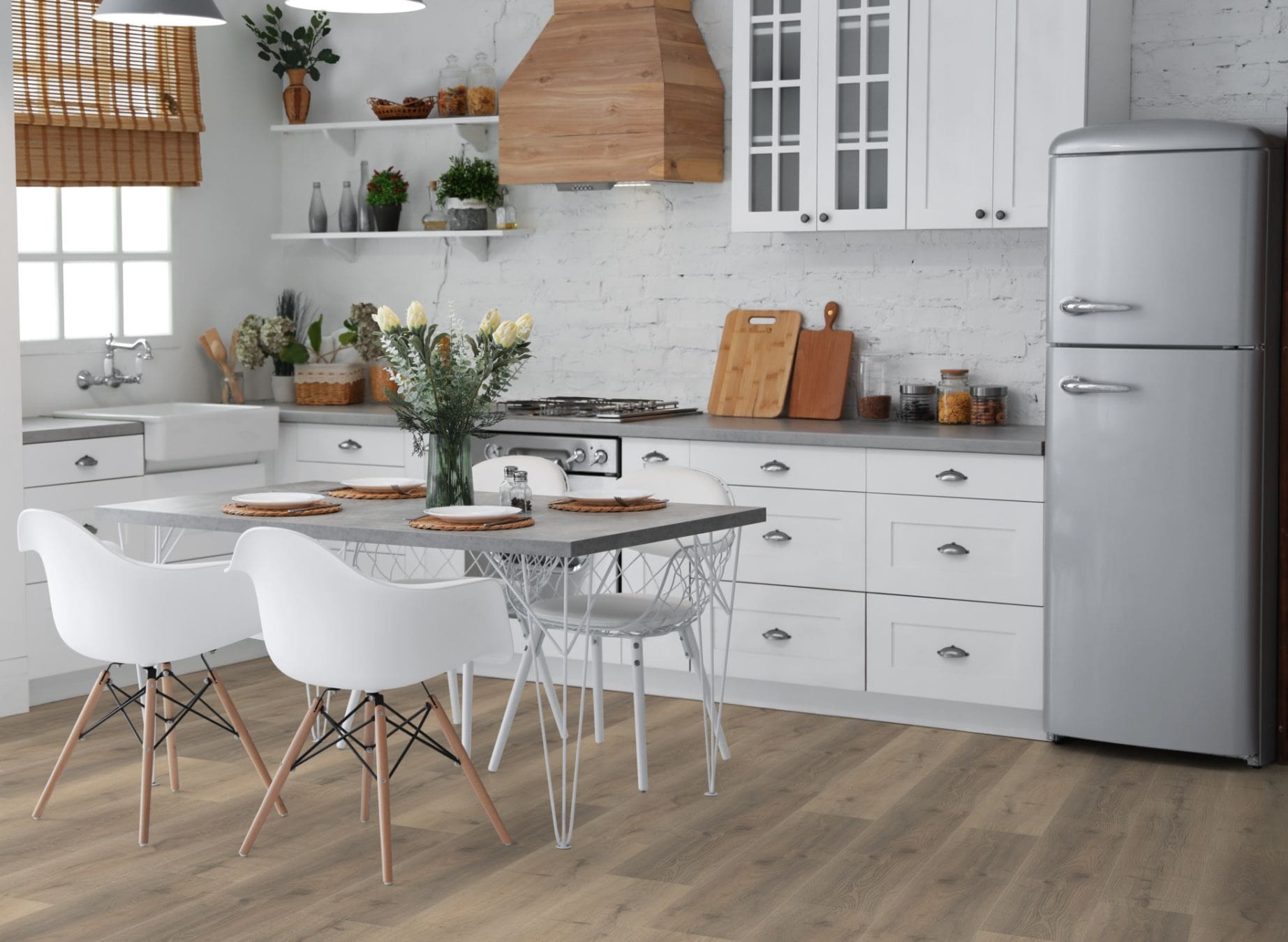 The Fusion 12mm Premium range offers a matt finish with an authentic embossed surface and v-groove edges to give the appearance of a traditional solid wood floor. It can be used in commercial premises and is more than suitable for any busy home. It is ideal for a lounge, hallway, kitchen or dining room.