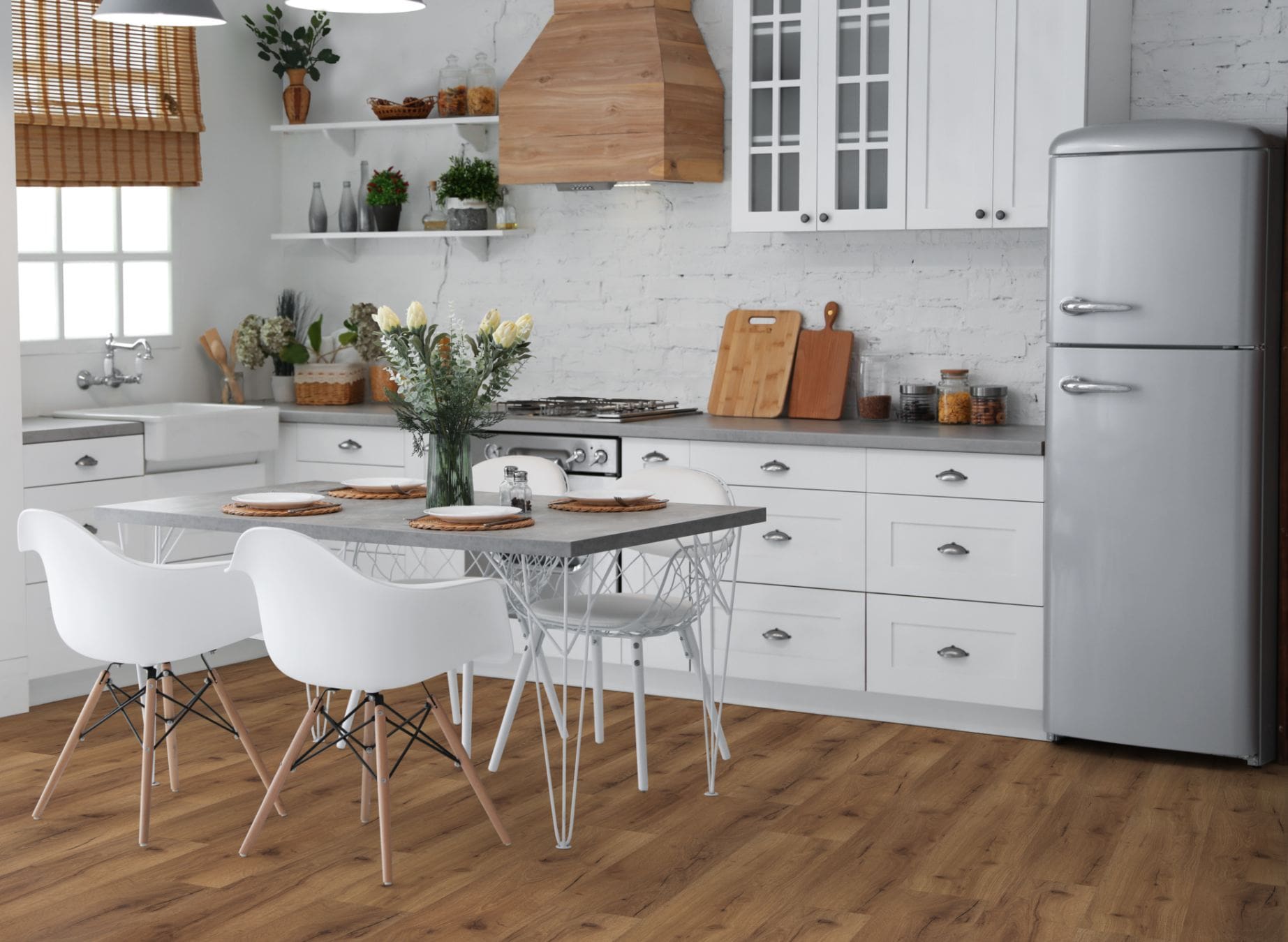 The Fusion 12mm Premium range offers a matt finish with an authentic embossed surface and v-groove edges to give the appearance of a traditional solid wood floor. It can be used in commercial premises and is more than suitable for any busy home. It is ideal for a lounge, hallway, kitchen or dining room.