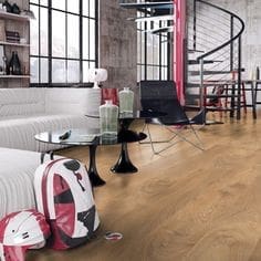 Modern floors with a delicate wood texture. Ideal for Scandinavian and minimalistic interiors. The King Floor range is Kronopols thickest, most sturdy board at 12mm thick, it is the best laminate around for matching heights within a renovation or for peace of mind when laying a laminate flooring downstairs as it has an AC5 grading, and now with a water-resistant core.
