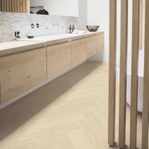 Quicksteps Ciro herringbone flooring collection features a warm, natural colour palette of sun-kissed wood designs. Its a great choice for those looking to add a touch of luxury and elegance to their home. Our UNIZIP technology is one ingenious type of plank that clicks on both sides.